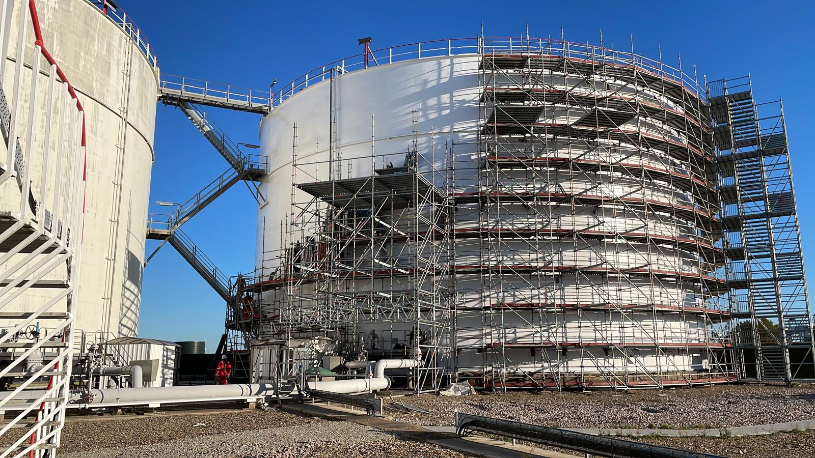 Scaffolding to support work on storage tanks, pipelines, pipework, structural steel, and secondary containment systems, enabling inspections, coating works, repairs, and integrity interventions.